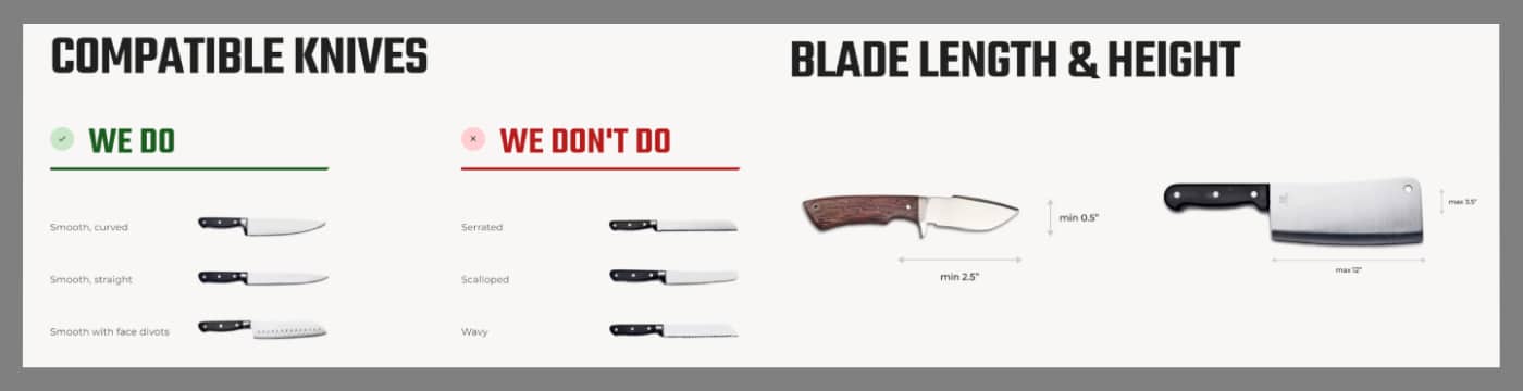 End frustration with dull knives – cut faster and more precisely. The Resharp system sharpens most American and European style knives, as well as Japanese knives with a v-shaped bevel. Sharpens blades as short as 2.5 inches and as long as 12 inches.
