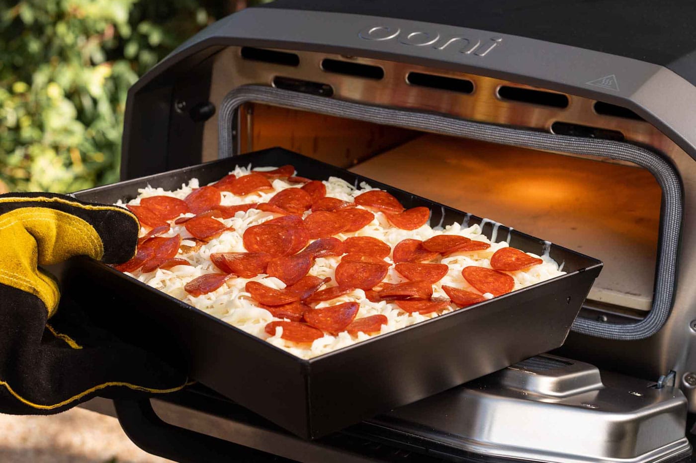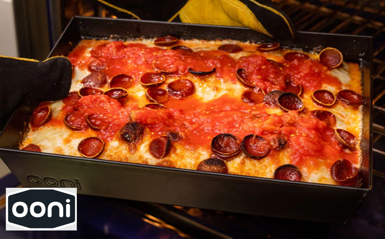 Today, we’re showing you how to create the classic Detroit style Pepperoni Pizza built on Ooni’s quick proof dough that’s thick and chewy. Their dough can be ready to cook in approximately 3 hours. Otherwise, your favorite pizza dough mix should do, as long as you set aside enough time for it to rise and proof.