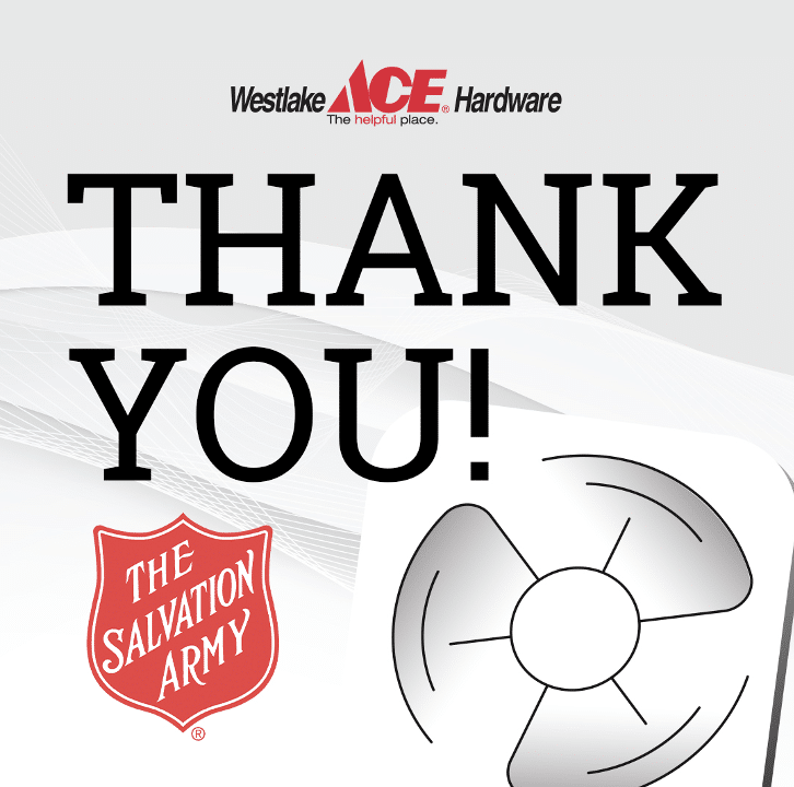 In June, Westlake Ace customers supported the Fan Drive by rounding up their purchases at the register. As a result, Westlake Ace was able to provide 6,000 fans to Salvation Army locations across the U.S.